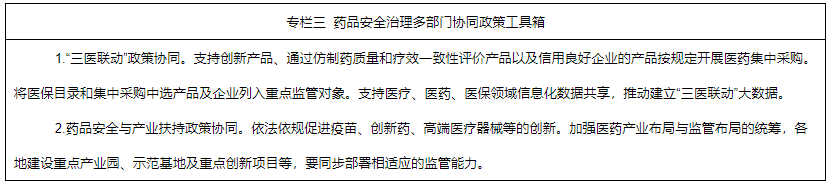 5.強(qiáng)化多部門治理協(xié)同。加快推進(jìn)“三醫(yī)聯(lián)動(dòng)”改革。藥品監(jiān)管、公安、工信、衛(wèi)生健康、醫(yī)保、發(fā)展改革、財(cái)政、科技等部門加強(qiáng)資源共享和政策協(xié)調(diào),建立藥品安全治理多部門協(xié)同政策工具箱。發(fā)揮藥學(xué)科技社團(tuán)組織、新聞媒體作用,加大科普宣傳力度,舉辦全國(guó)安全用藥月和醫(yī)療器械、化妝品安全科普宣傳周等品牌活動(dòng),提升全民安全用藥用械用妝科學(xué)素養(yǎng)。進(jìn)一步完善有獎(jiǎng)舉報(bào)制度,暢通投訴舉報(bào)渠道,充分發(fā)揮12315熱線和全國(guó)12315平臺(tái)作用。將藥品安全信用狀況依法記入企業(yè)和個(gè)人信用記錄,納入全國(guó)信用信息共享平臺(tái),將嚴(yán)重違法失信企業(yè)和個(gè)人列入市場(chǎng)監(jiān)督管理嚴(yán)重違法失信名單,依法依規(guī)實(shí)施跨行業(yè)、跨領(lǐng)域、跨部門失信聯(lián)合懲戒。